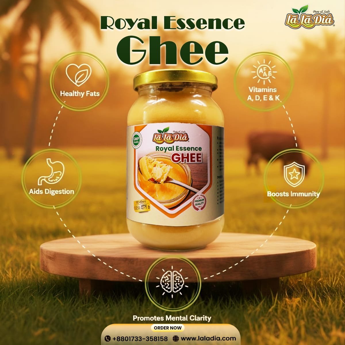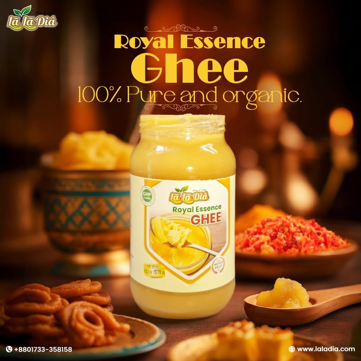 রয়্যাল এসেন্স ঘি হলো উৎকৃষ্ট মানের বিশুদ্ধ ঘি, যা নির্বাচিত দুধের ফ্যাট থেকে স্বাস্থ্যসম্মত ও আধুনিক প্রক্রিয়ায় প্রস্তুত করা হয়েছে। এর মনোরম ঘ্রাণ, খাঁটি স্বাদ এবং উচ্চ মানের বিশুদ্ধতা আপনার প্রতিদিনের রান্নাকে করে তোলে আরও সুস্বাদু ও পুষ্টিকর।